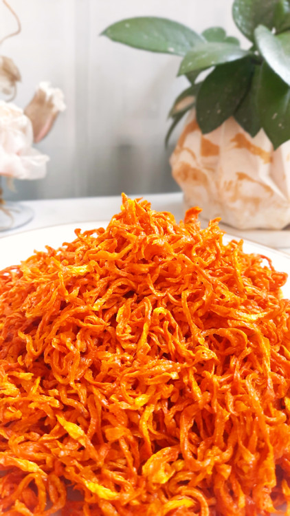 هویج خلالی سرخ شده تبریز برای خورشت هویج یا هویج پلو یا تزئین کنار غذا فوق العادست کاملا خانگی و با بهترین روغن سرخ کردنی بازار تهیه شده تا یکسال داخل فریزر قابل نگهداریه