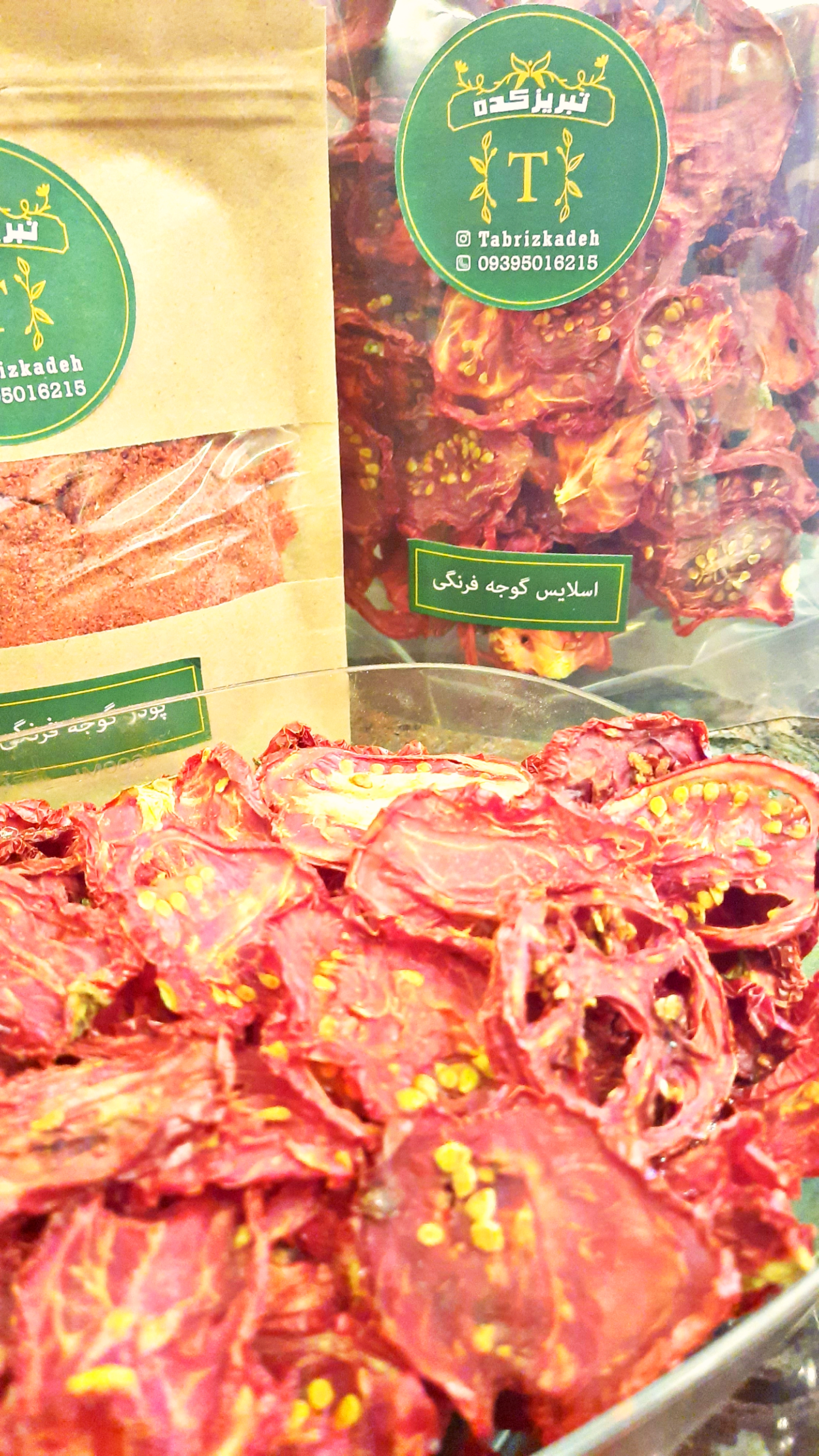 گوجه خشک تبریز یه چاشنی بی نهایت خوشگل و خوشمزه برای غذاهایی که گوجه فرنگی دارن مثل تاس کباب و کباب تابه ای و آبگوشت ...و هم یه تزئین فوق العاده خوشگل به عنوان دورچین فینگر فودها و غیره و ذالکه!