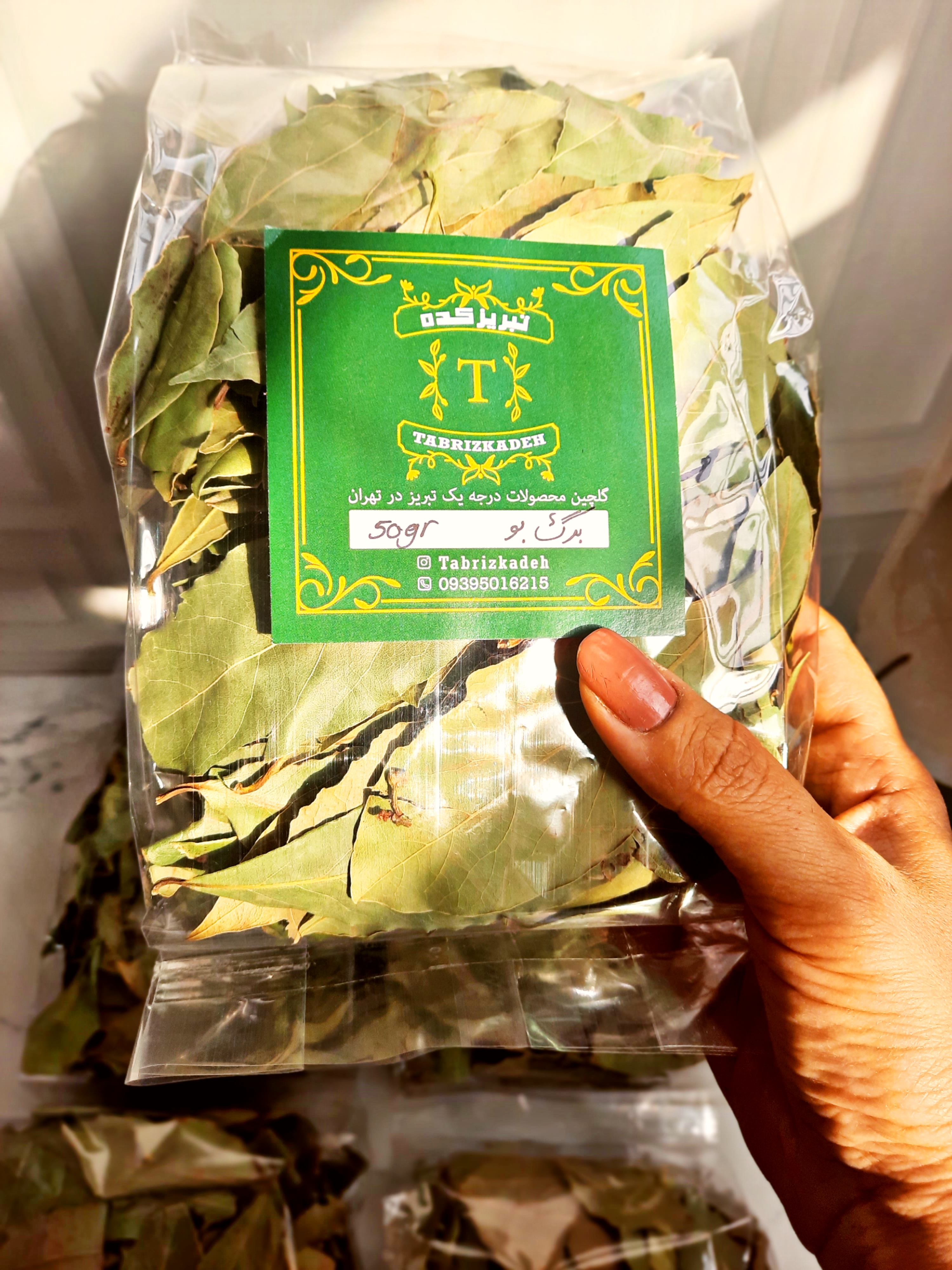 برگ بوی درسته تبریز با عطر ملایم برای گرفتن بوی زهم مرغ و گوشت و بوقلمون و همچنین جلوگیری از ظهور شپشک برنج به کار میره
