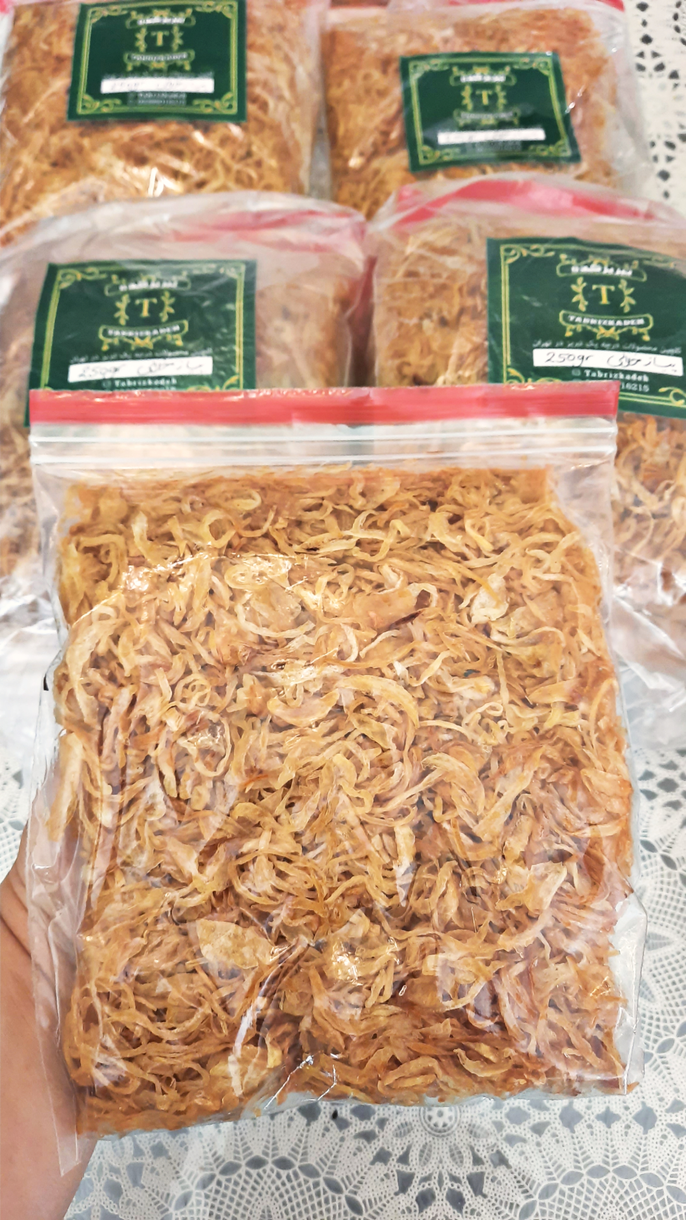 پیاز خلالی خونگی تبریز با بهترین روغن مخصوص سرخ کردنی بازار به صورت تازه تهیه میشه ...عطر و طعمش بی نظیره و به غذاهای خوشمزه تون جلوه و طعم منحصر بفردی میده شک نکنید !
